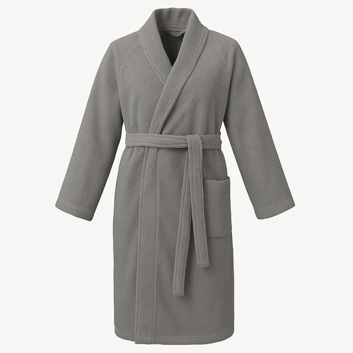 The versatile grey tone adds a sophisticated, modern touch that suits any home or spa setting. Designed with a classic shawl collar, adjustable waist belt, and deep front pockets, it offers both comfort and convenience in every wear.
